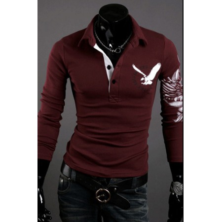 Eagle Tattoo Printing Men's Long-Sleeved Lapel Mens Long-Sleeved T-Shirt