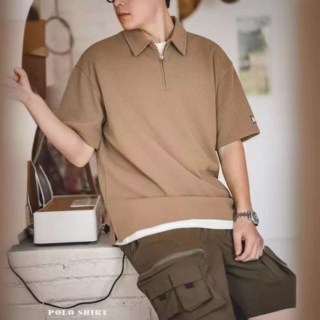 Large Size Half Zip Polo Shirt Retro Casual Men's Wear