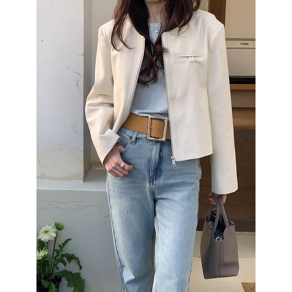 Casual Loose Stand Collar Jacket Women Zipper Cardigan Long Sleeve Jacket Top